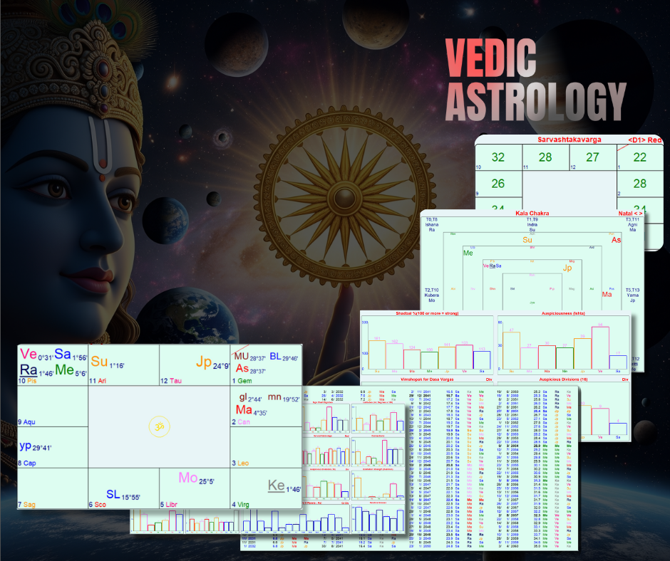 เมื่อใช้การคำนวณพลังของดวงดาว ด้วยข้อมูล วัน เดือน ปี ที่เกิด และเวลากำเนิด ในโปรแกรมที่สร้างขึ้นเฉพาะศาสตร์ของ Vedic Astrology อันเป็นที่ยอมรับกันทั่วโลก ซึ่งจัดว่าเป็น โหราศาสตร์ “ระบบนิรายนะ” (Nirayana) โดยจะแตกต่างจากโหราศาสตร์ไทย(สุริยยาตร์) ในแง่ของการวางลัคนากำเนิดในแต่ะราศี สำหรับนักโหราศาสตร์ที่ใช้แนวโหราศาสตร์ “ระบบนิรายนะ” (Nirayana) นี้ ผู้คิดค้นโปรแกรมที่นิยมใช้ เช่น Jaganatha hora หรือโปรแกรมใหม่ล่าสุดอย่าง Shri Jyotish Star 10 เป็นต้น ได้กำหนดค่าวัดระยะของดวงดาวเกณฑ์ที่ใช้ในการคำนวณค่าต่างๆของดวงดาวที่กระทบต่อโลกไว้ได้อย่างละเอียดแม่นยำที่เรียกว่า Ayanamsa แบบ Lahiri Chitarapaksa ทำให้ค่าต่างๆออกมาถูกต้องชัดเจน (อันเป็นหลักคิดของสถิติทางคณิตศาสตร์) ดังที่แสดงในรูปต่างๆด้านบน เราจึงนำมาใช้แปลผลในการทำนายเพื่อวางแผนชีวิตในด้านต่างๆได้อย่างแม่นยำมาก
